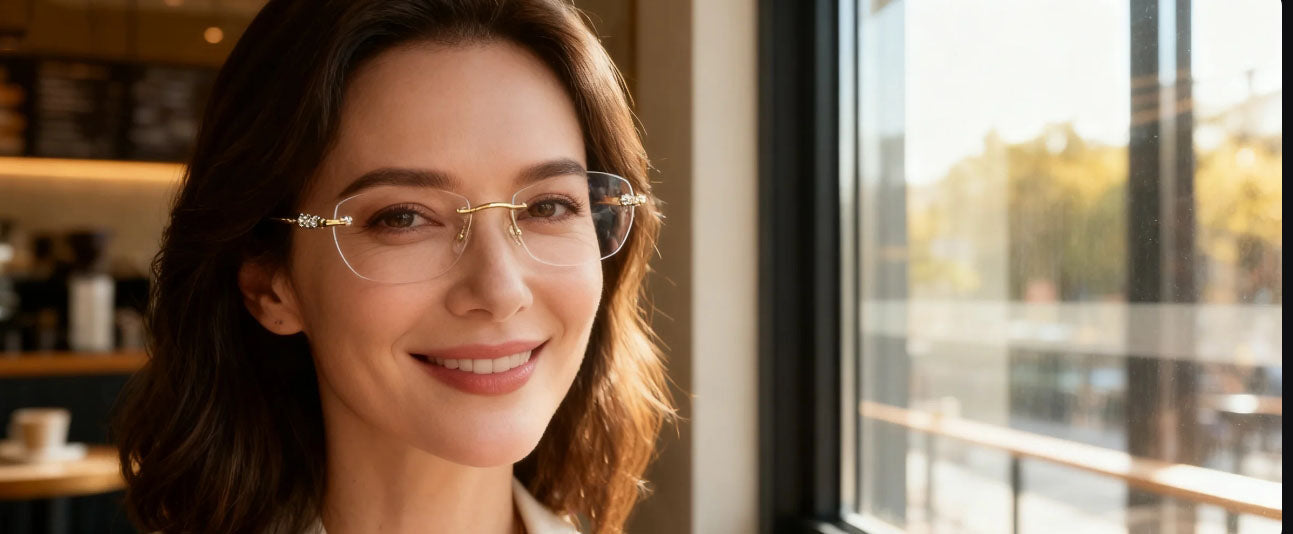 Ultra-lightweight titanium semi-rimless reading glasses β protects your eyes from blue light